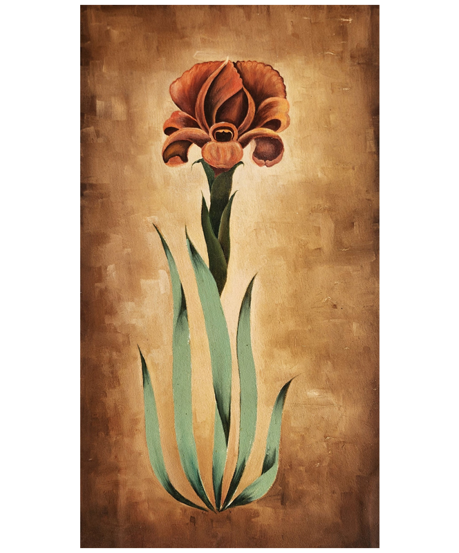 A solitary bloom rises from warm soil tones, its petals unfolding in quiet strength and mineral color.