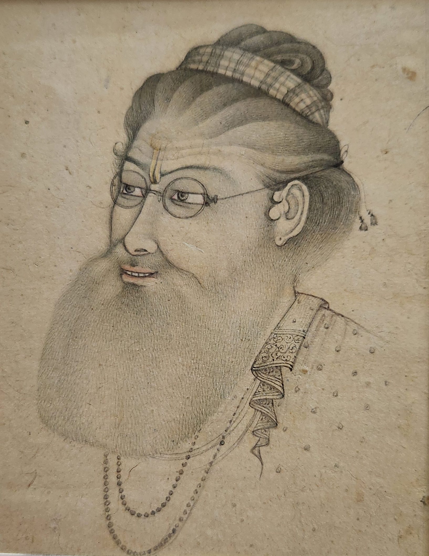 This elegant miniature painting portrays a nobleman dressed in traditional attire, exuding grace and dignity.