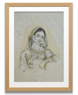 A detailed miniature painting depicting a regal figure adorned in traditional jewelry and attire.