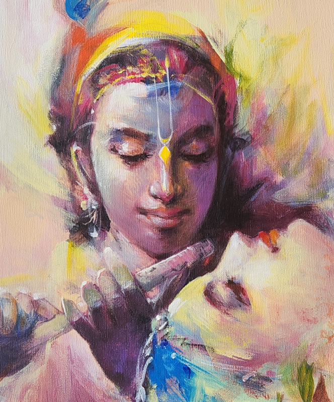 An exquisite oil painting capturing the eternal bond of love and devotion between Radha and Krishna.