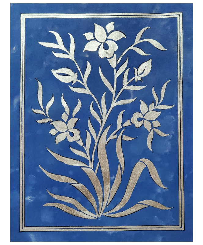 Blue Shine Paper Painting captures the serene fusion of soft blue hues and delicate silver patterns.