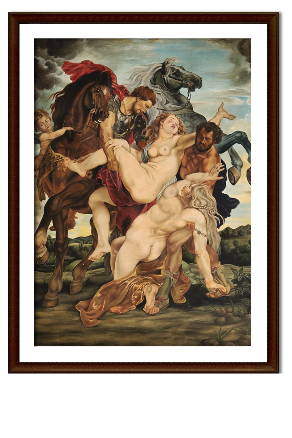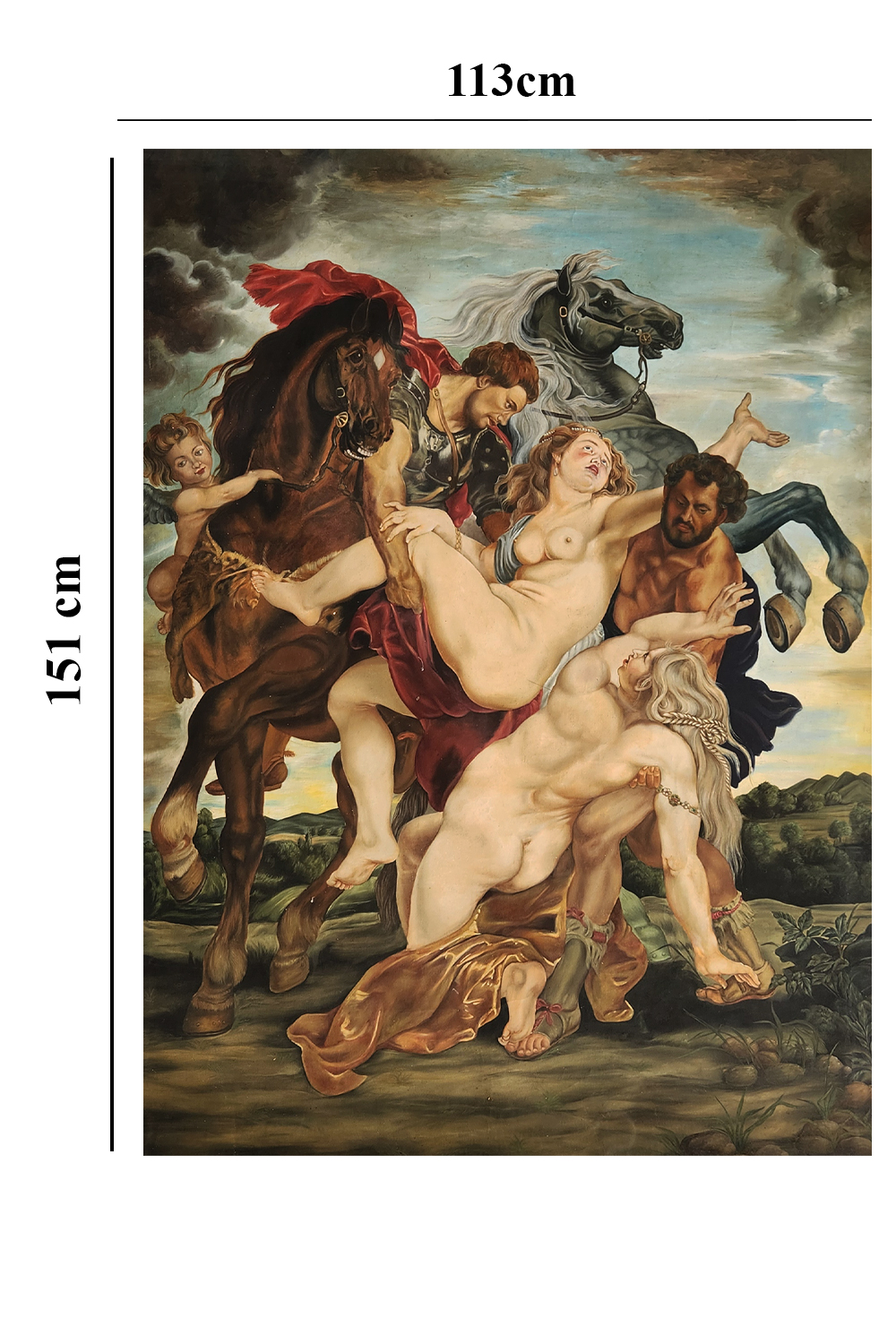 This exquisite oil painting, inspired by Peter Paul Rubens' masterpiece, captures the powerful mythological narrative of Castor and Pollux abducting Leucippus' daughters. With a masterful use of light and shadow, the painting showcases the intense emotions, movement, and energy that Rubens was renowned for. The intricate details of the figures, their expressions, and the flowing drapery highlight the drama and grandeur of the scene, making this piece a remarkable tribute to Rubens' artistic genius.