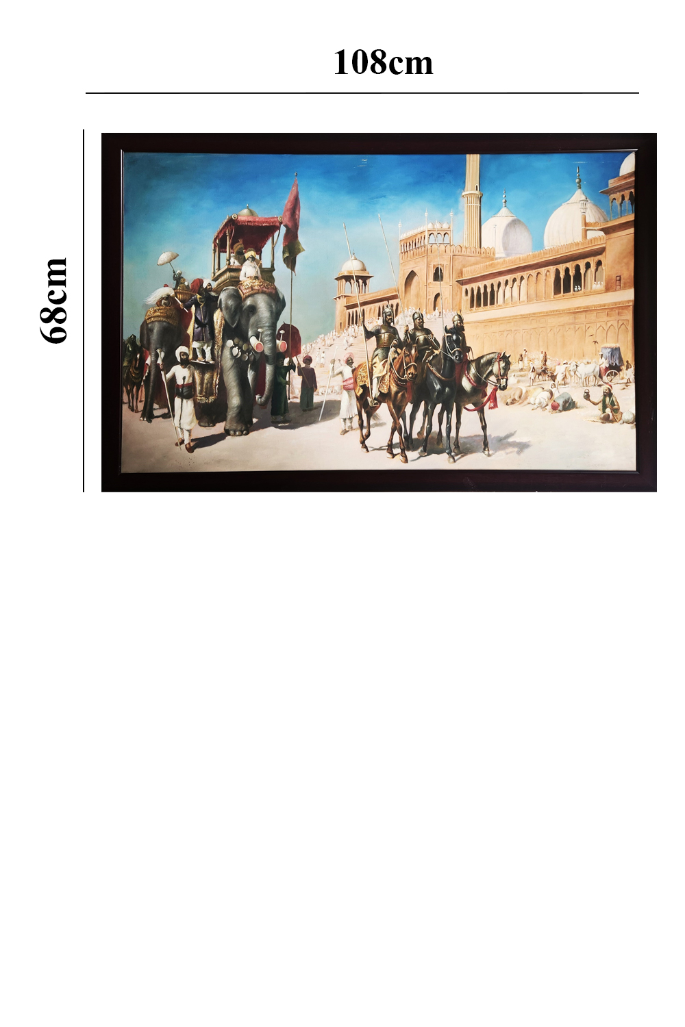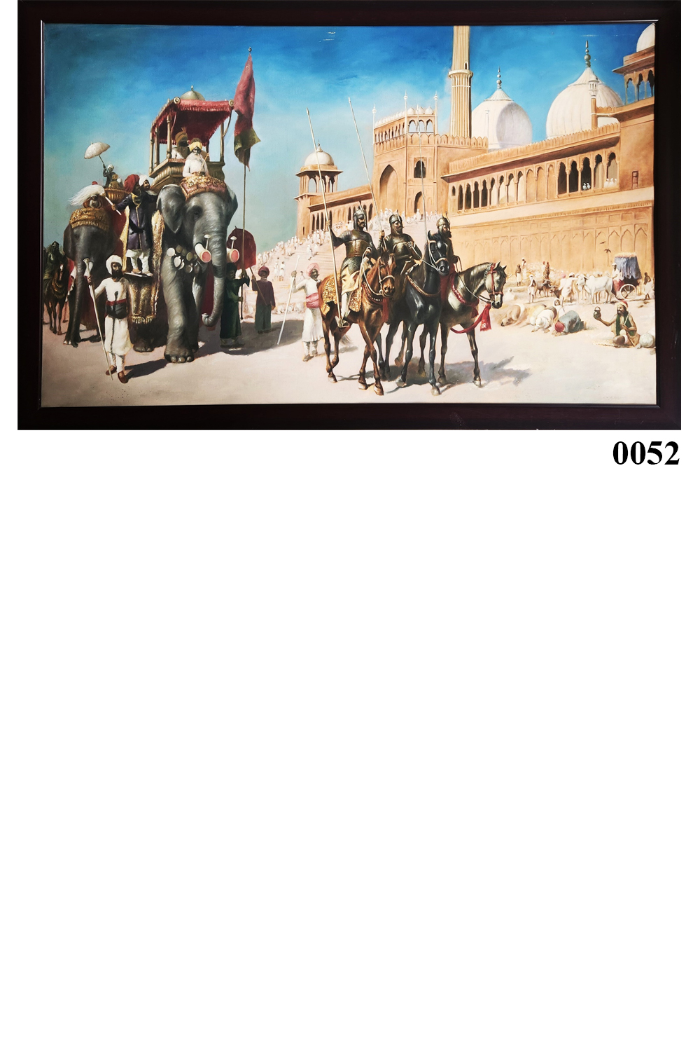 This oil painting captures a vibrant and detailed scene of a royal procession. Key features include: