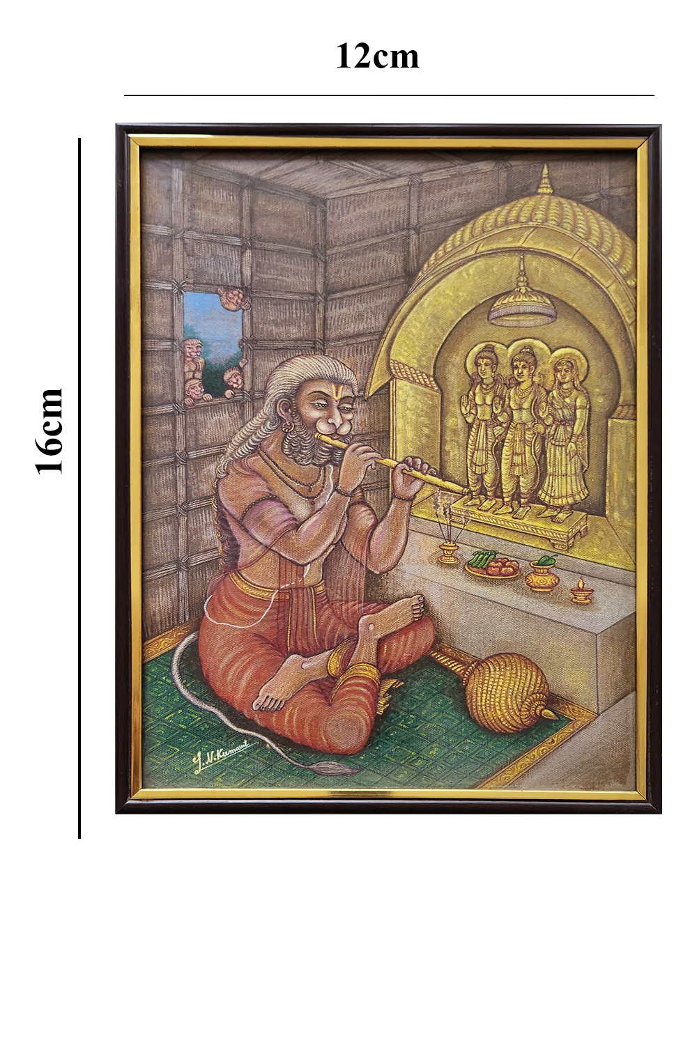 Devotee's Posture: Hanuman is shown kneeling with folded hands, emphasizing his humility and reverence.