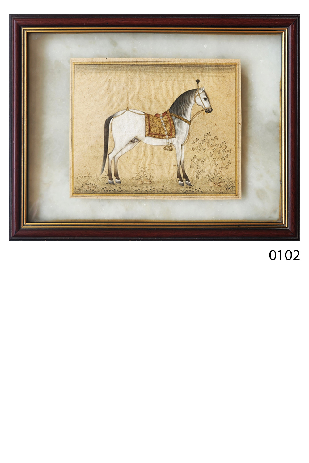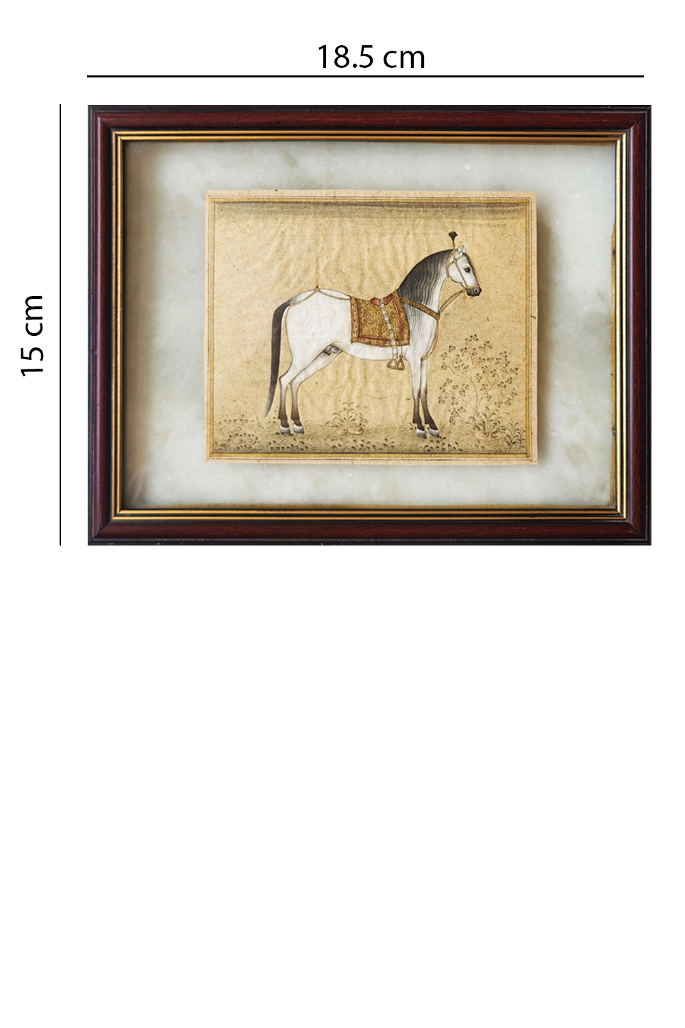 This enchanting miniature painting vividly portrays a grand royal procession, highlighting the intricate craftsmanship of the artist. The painting features: