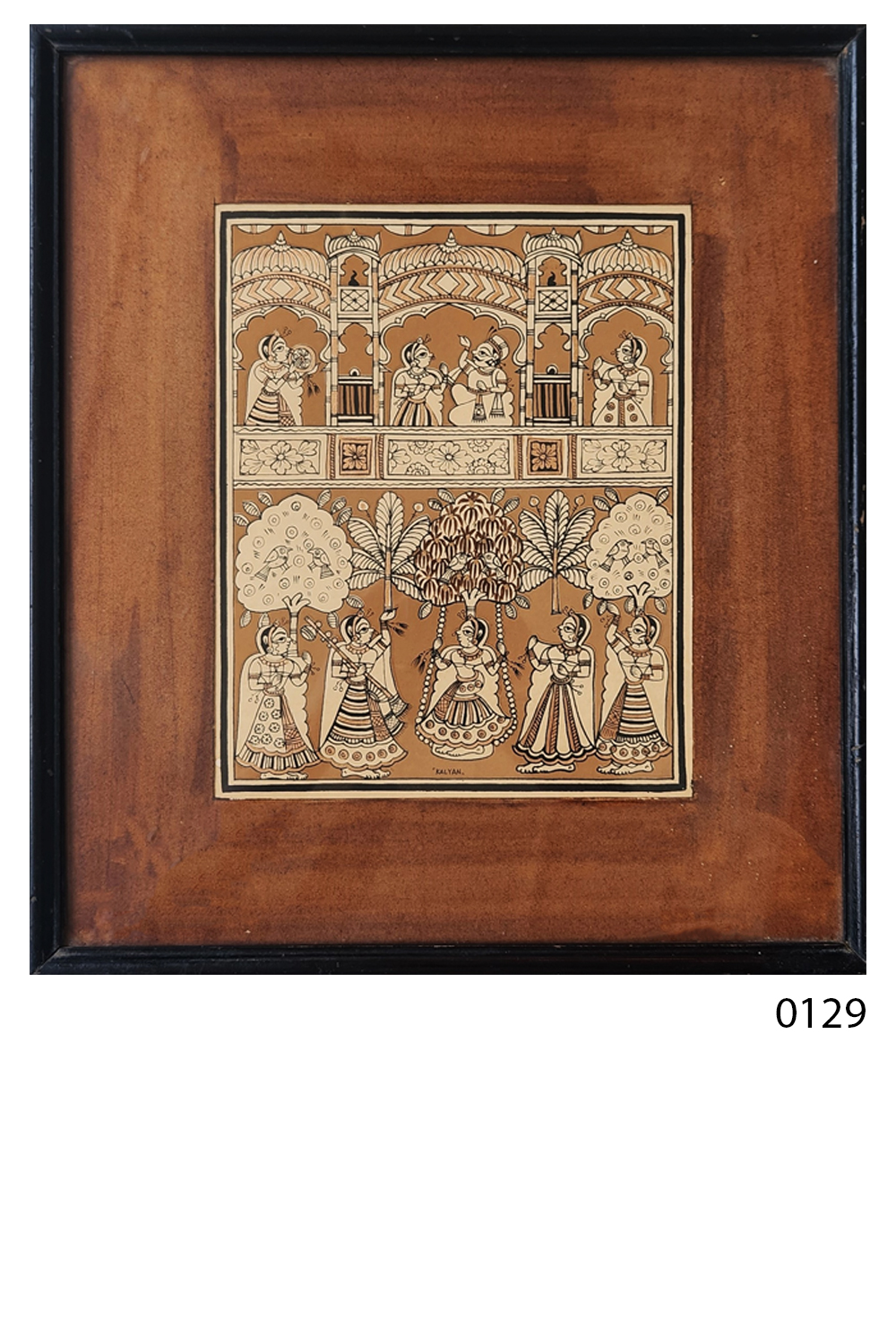 This painting showcases a traditional Indian celebration with a royal theme, featuring: