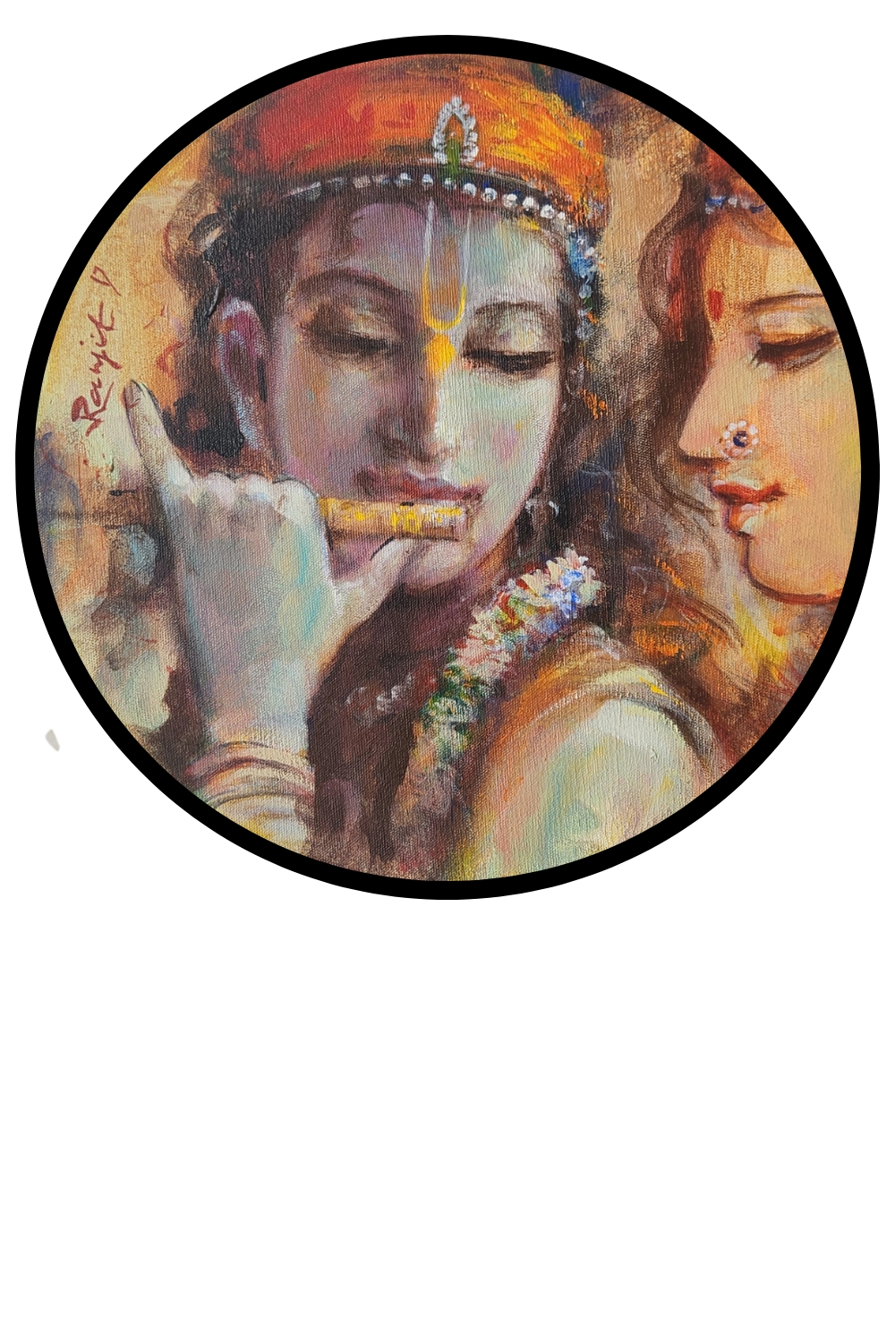 This oil painting, titled "Eternal Embrace: Radha Krishna," beautifully captures the divine love between Radha and Krishna. The artwork features: