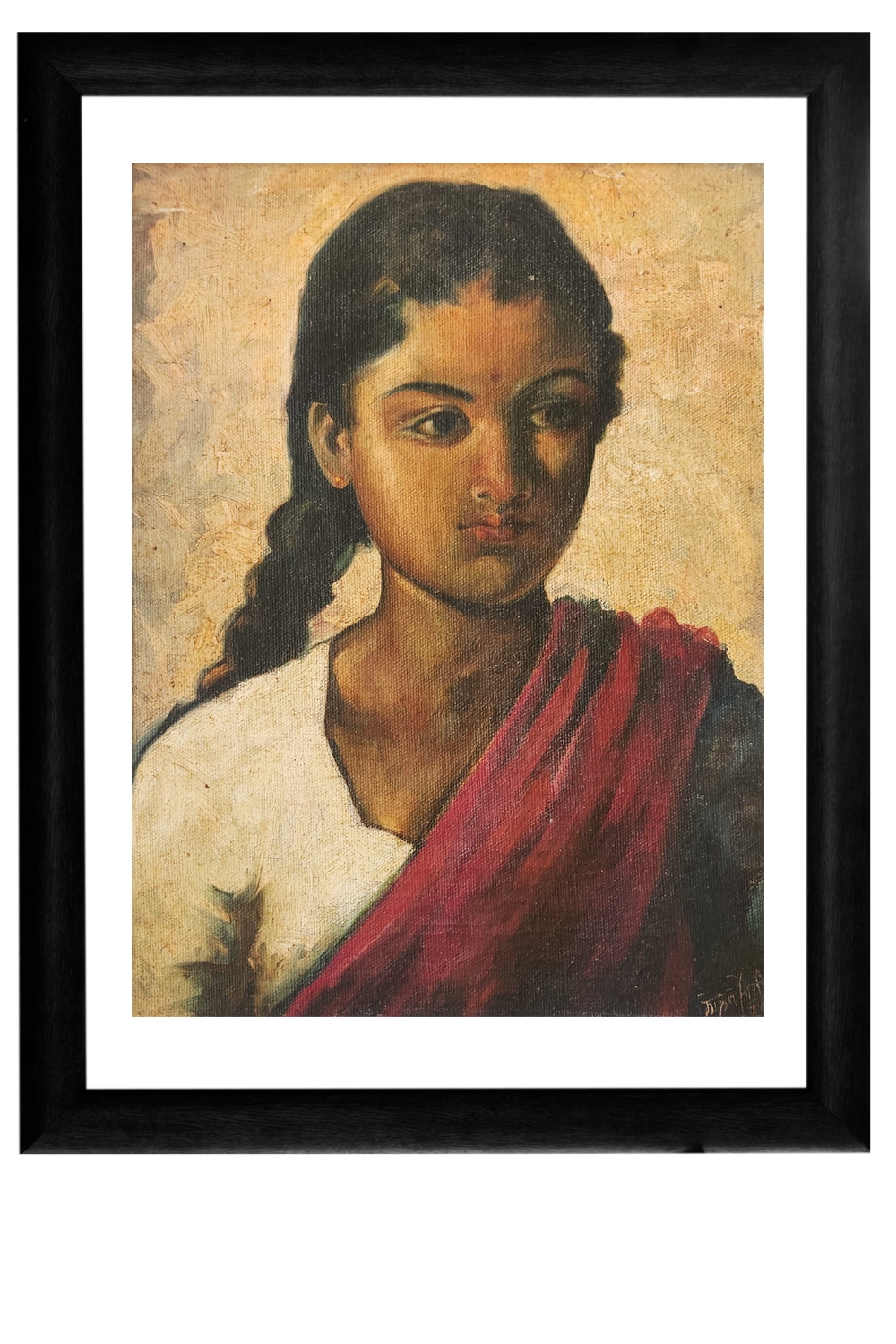 This oil painting captures the essence of traditional attire through its detailed depiction of a woman. The painting features: