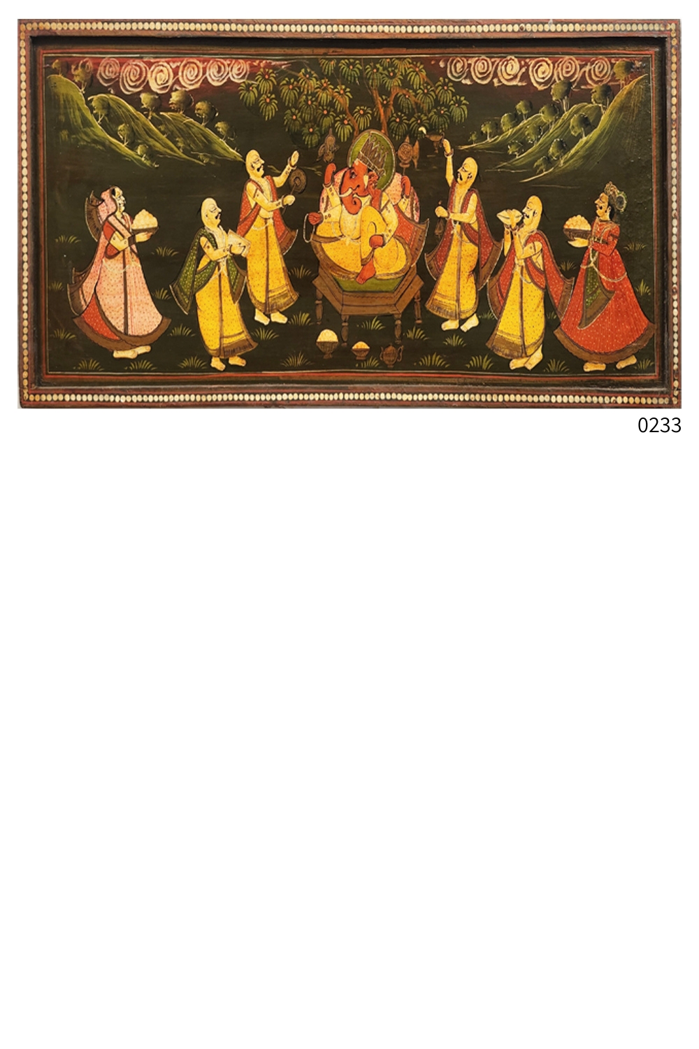 Attendants offering various items, symbolizing devotion and reverence.
