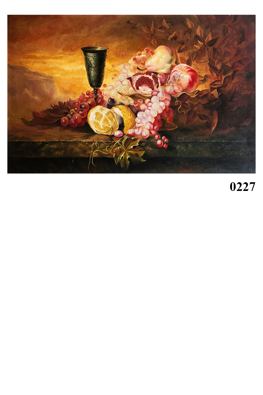 This oil painting, titled "Harvest Elegance," captures the essence of a bountiful harvest with a rich and detailed still life composition. The painting features: