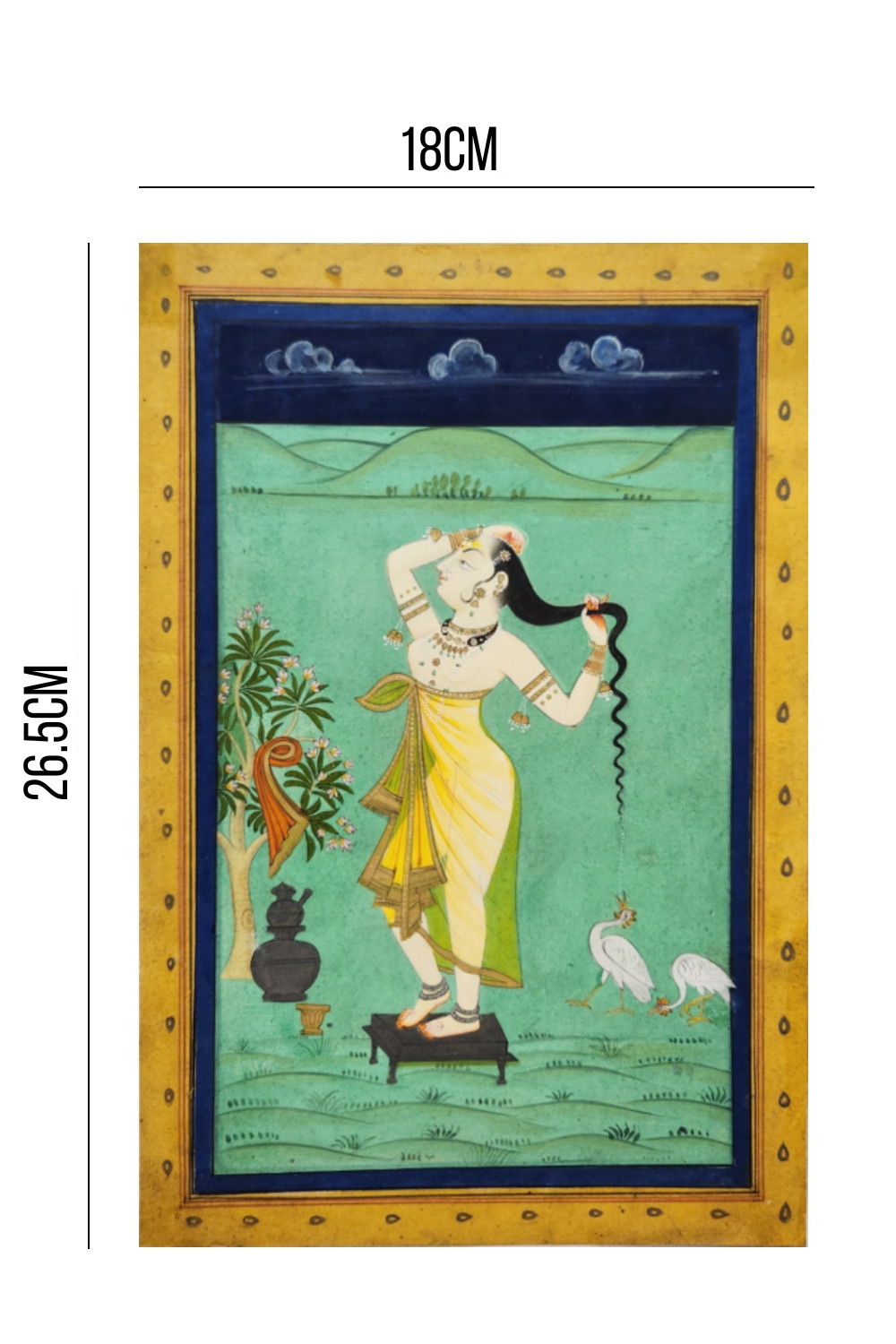 Product Content: The Serene Allure Miniature Painting is a masterful representation of the human form, featuring a nude lady in an artfully composed pose that embodies grace and serenity. The delicate brushwork and subtle detailing bring a sense of tranquility and refinement, making this artwork a captivating addition to any art collection. Its minimalist and tasteful approach to the subject matter celebrates the beauty of the human figure in its purest form. Perfect for those who appreciate fine art and sophisticated aesthetics, this painting adds a touch of elegance to any space.