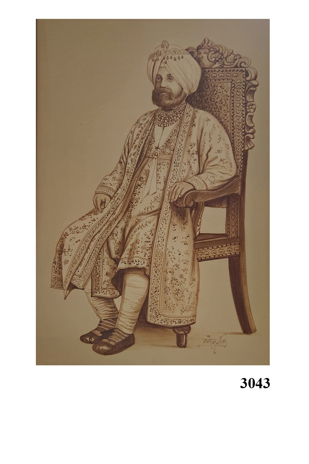 This watercolor sepia tone artwork captures the essence of regal elegance and historical significance. The painting features: