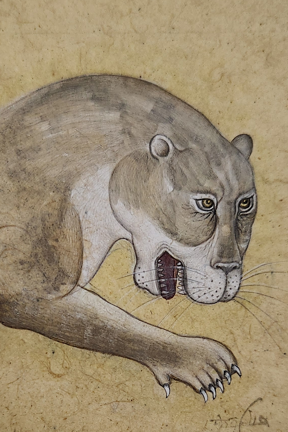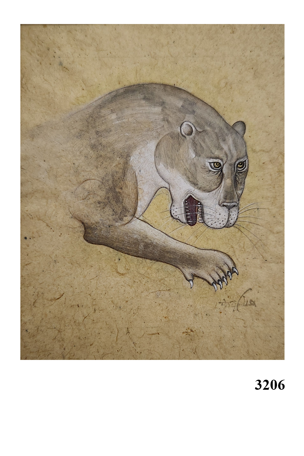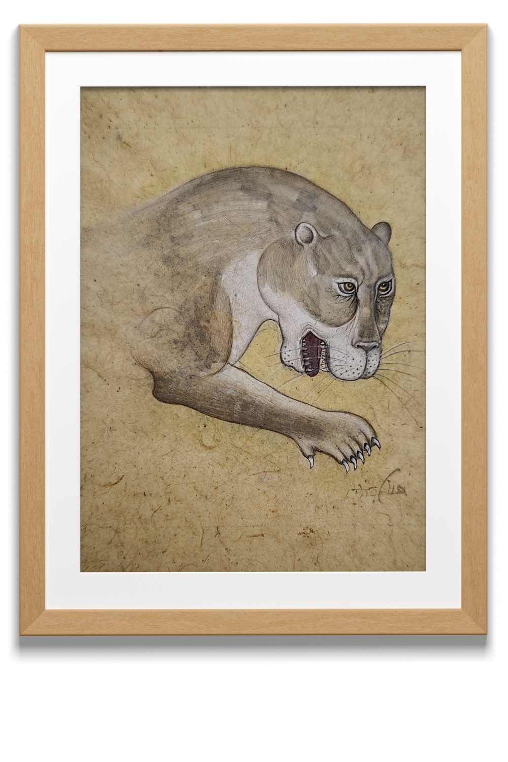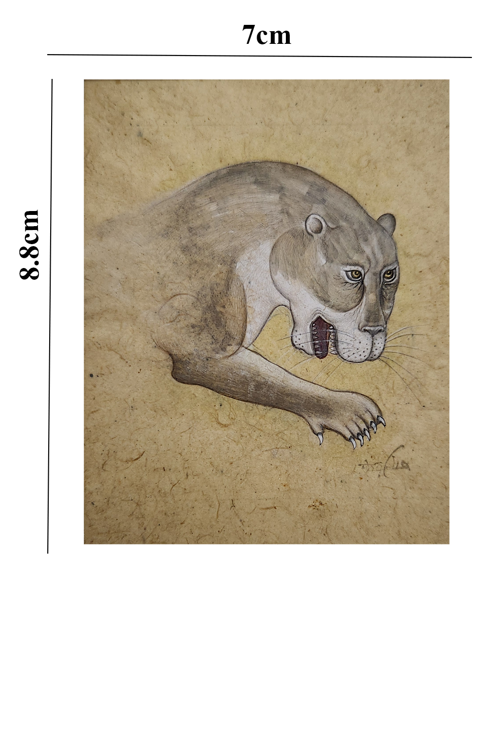 Product Content in Details: The Crouching Panther is a captivating portrayal of a panther in motion, symbolizing agility and grace. The painting showcases the panther's sleek body with its intricate pattern of fur and tense muscles, accentuating the animal's power and precision. The artist’s use of natural pigments and subtle shading enhances the realism, bringing the panther to life.