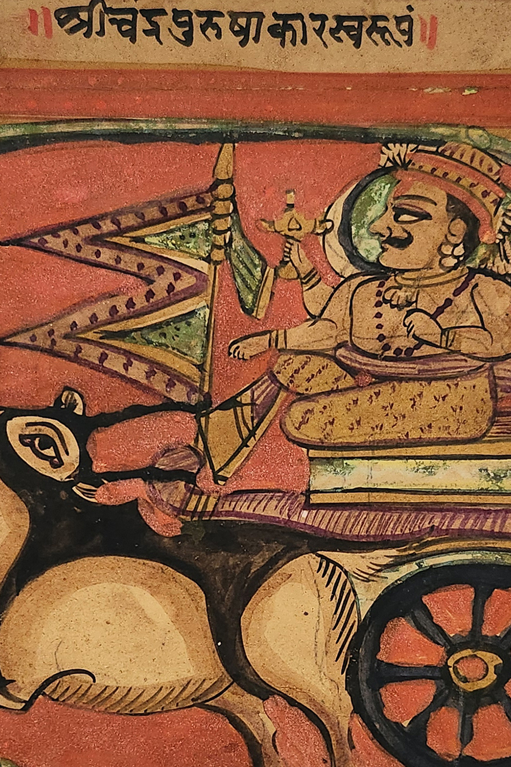 - Depicts Lord Vishnu riding Garuda in a dynamic composition