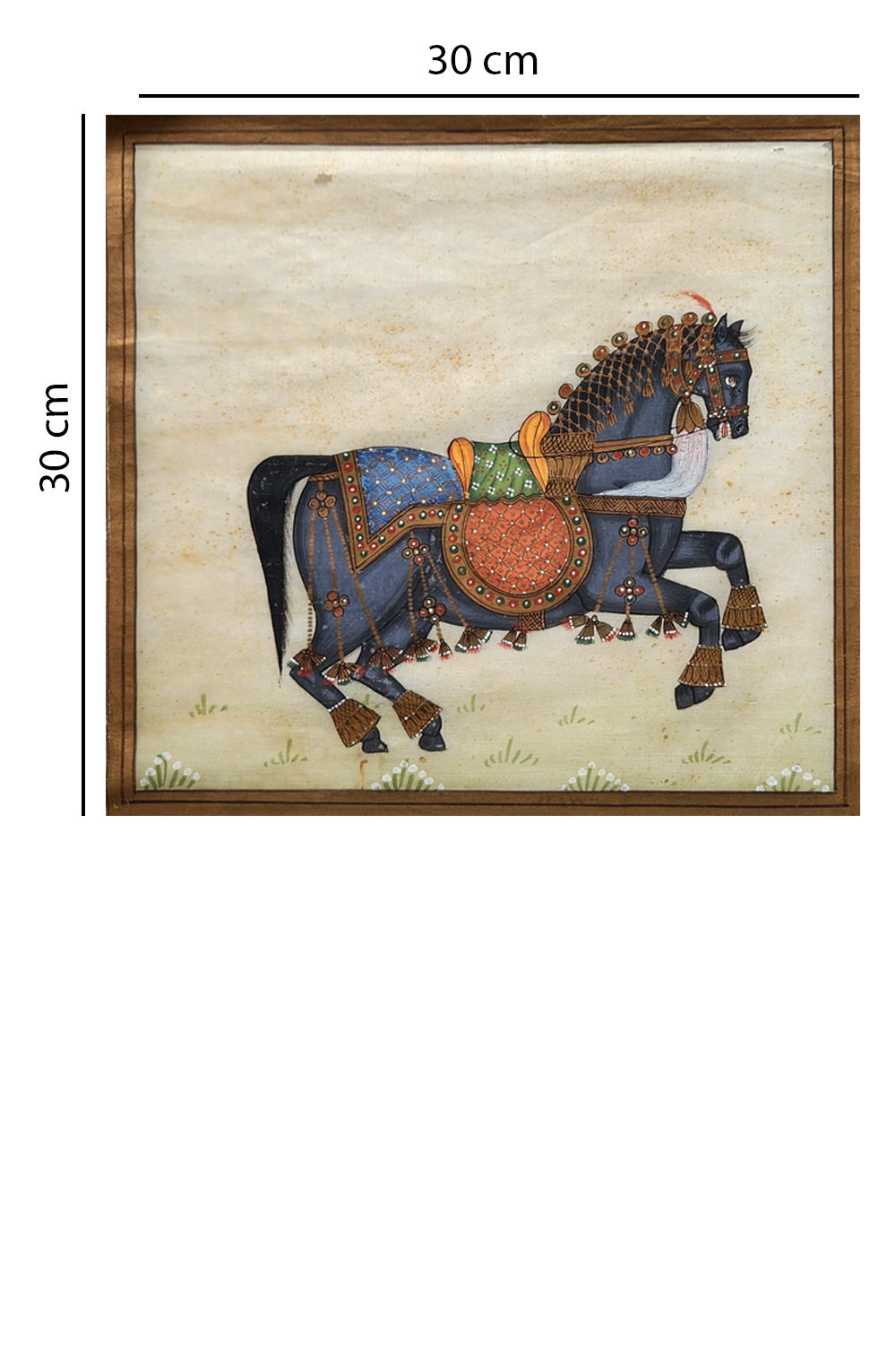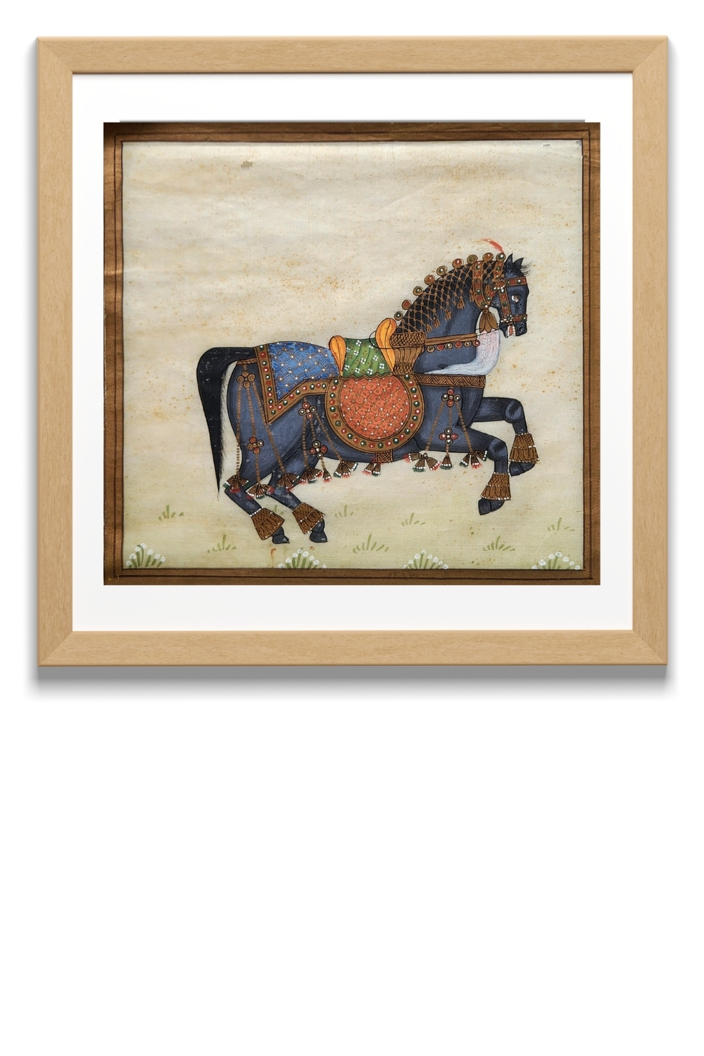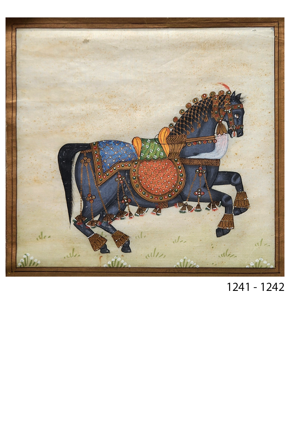 - Depicts a ceremonial horse, dressed in intricate royal garb