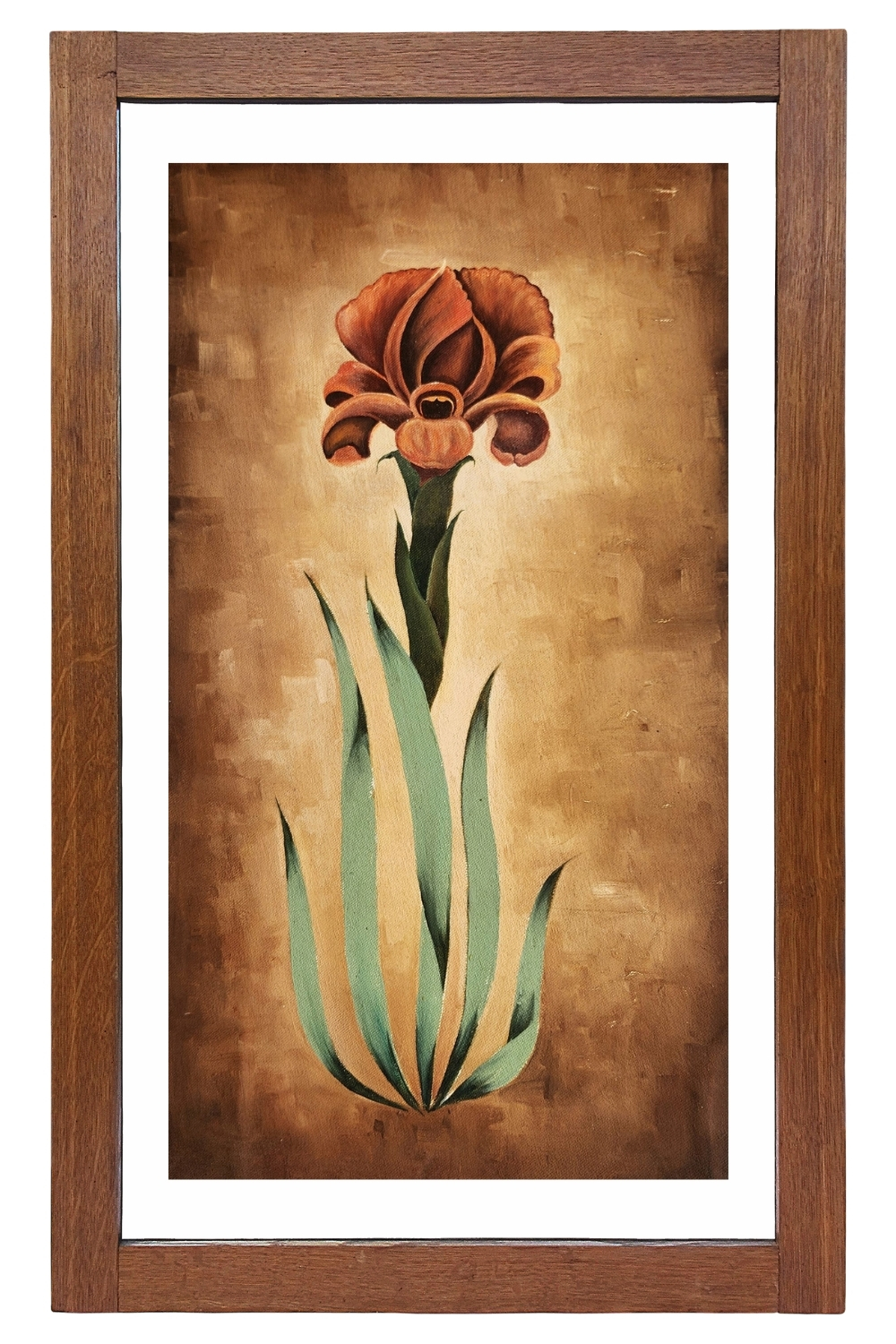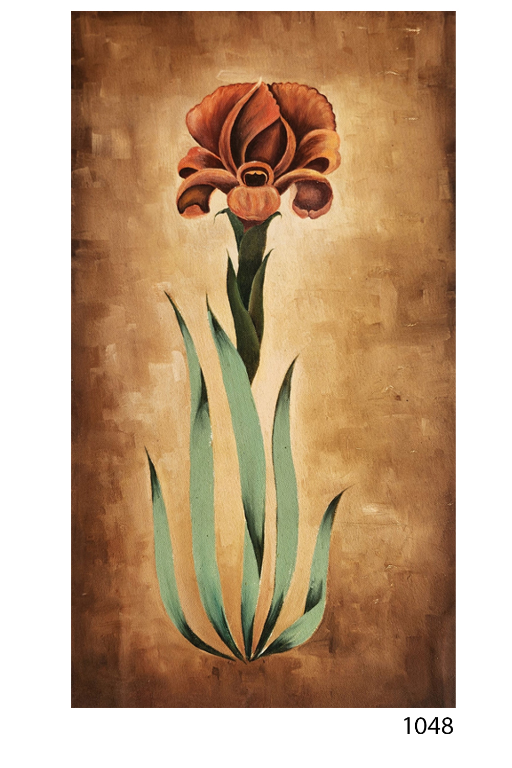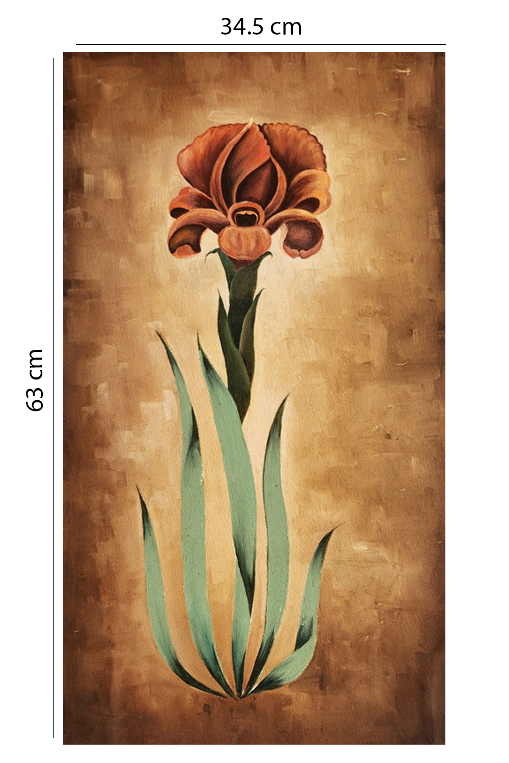 “Ekant Mein Khila” is a hand-painted canvas that captures the serene beauty of a single stylized flower, rendered with emotional depth and heritage technique. The reddish-brown bloom, with its intricate petal detailing and golden center, stands tall on a green stem with pointed leaves that curve gently into the composition. Set against a textured brown background, the painting evokes warmth, stillness, and natural elegance. Crafted using original mineral colors, each brushstroke carries the tactile richness and timeless authenticity of traditional Indian artistry. Perfect for curated interiors, poetic campaign visuals, or collectors seeking botanical simplicity with cultural soul.