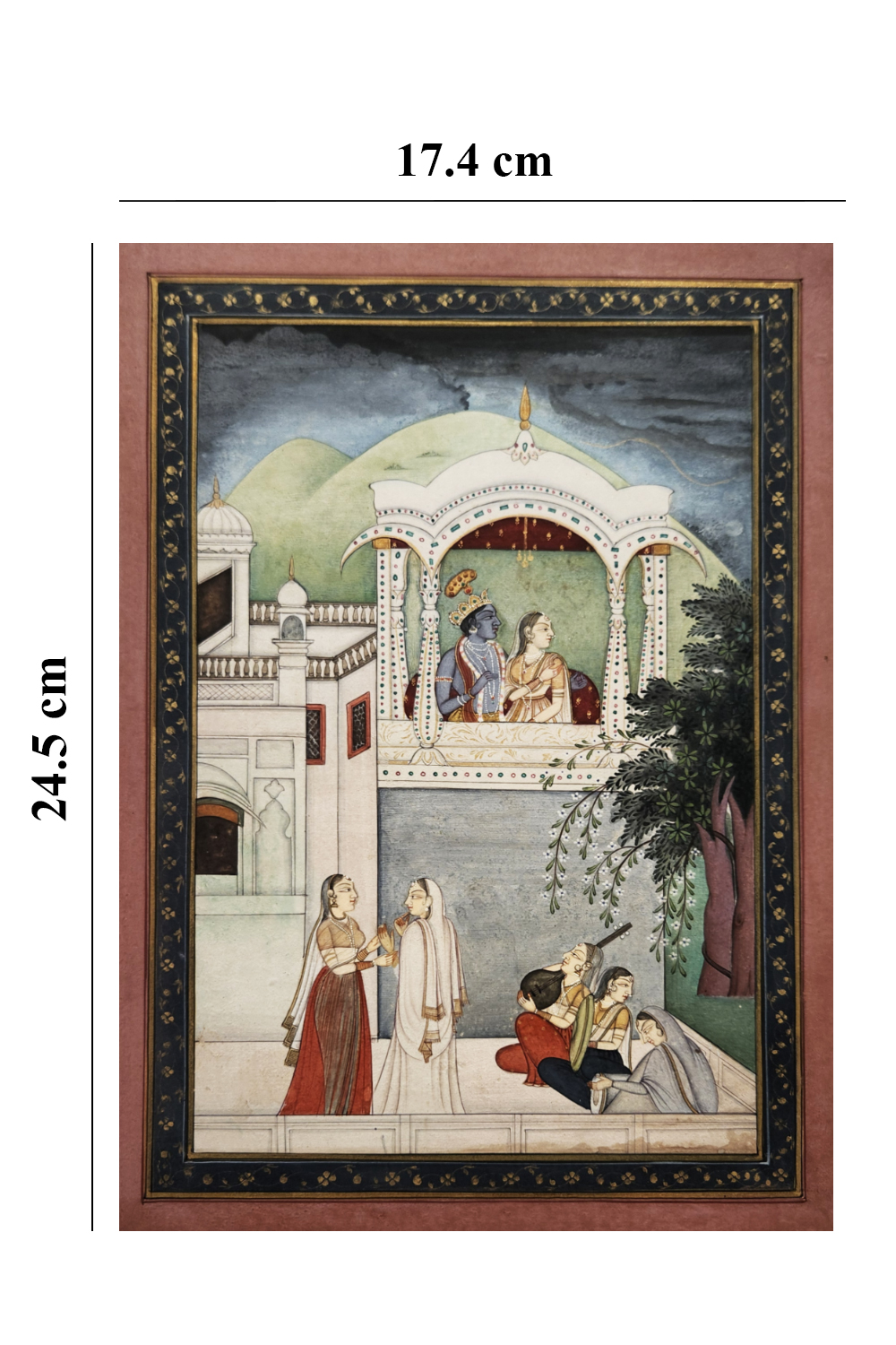 - Hand-painted: Original, handcrafted miniature painting featuring Radha, Krishna, and Gopi.
